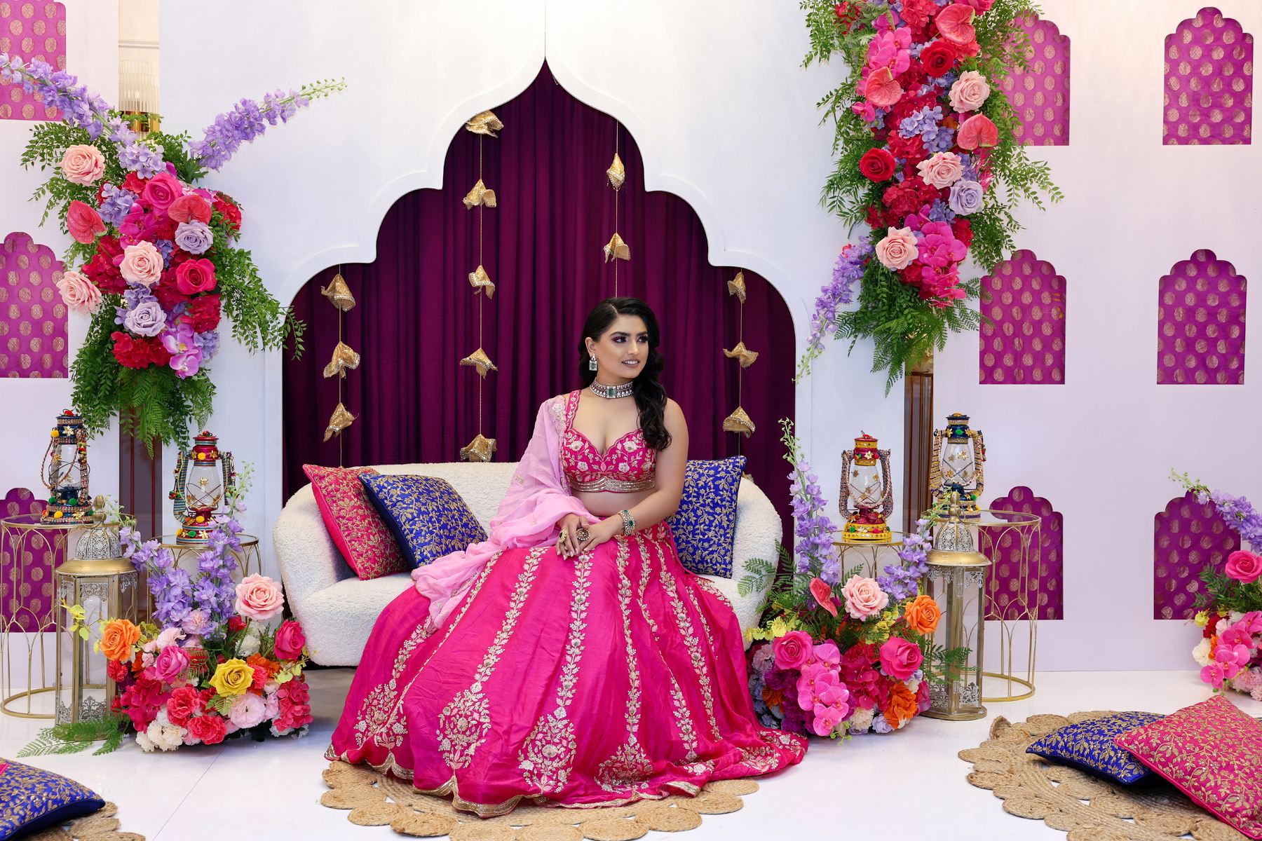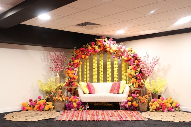 Mehndi is all about colour, comfort, and carefree fun! We create a lively, Instagram-worthy space with quirky floral details, vibrant cushions, and playful corners perfect for selfies and candid shots.